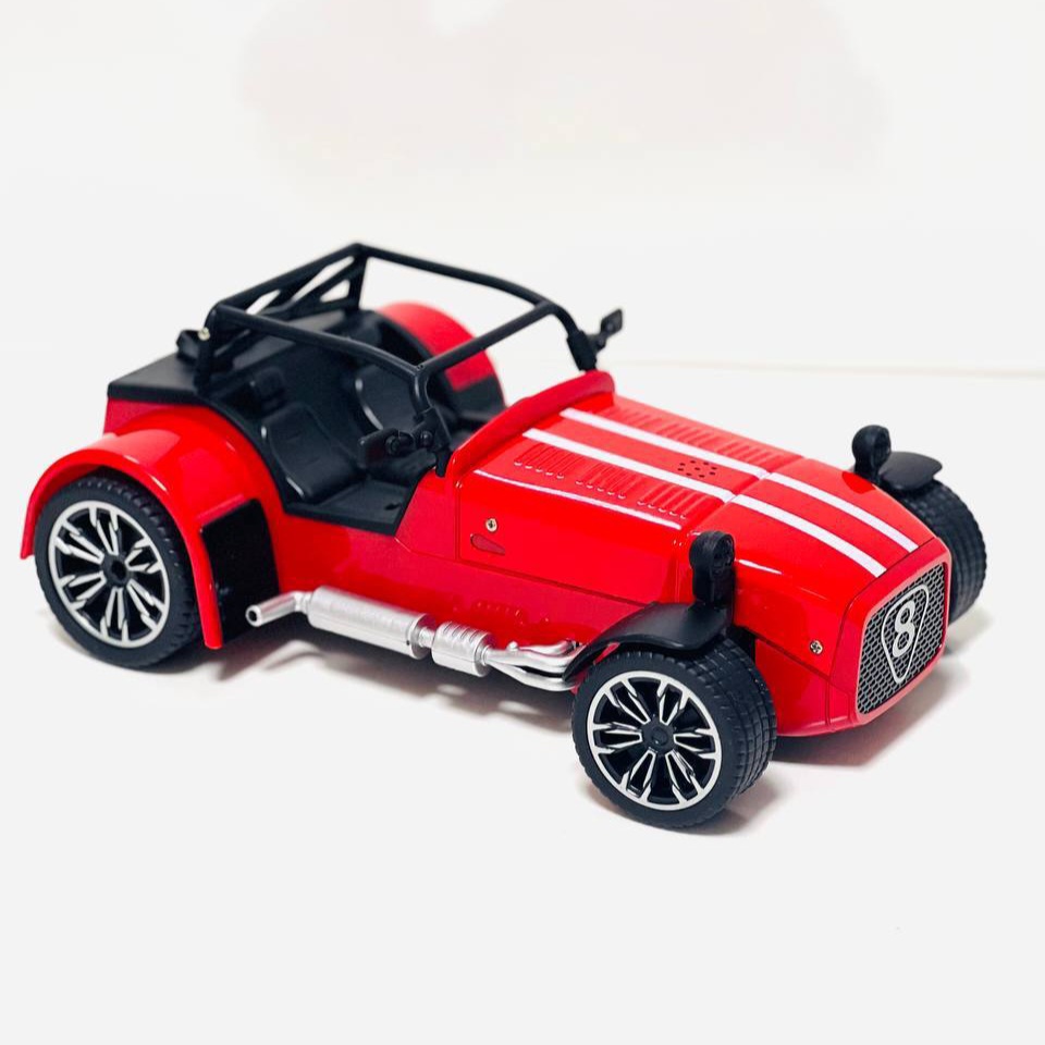 با رنگ قرمز جذاب، رولکیج مشکی، رینگهای اسپرت و شماره 8 روی بدنه؛ دقیقاً مثل یک ماشین مسابقه واقعی.