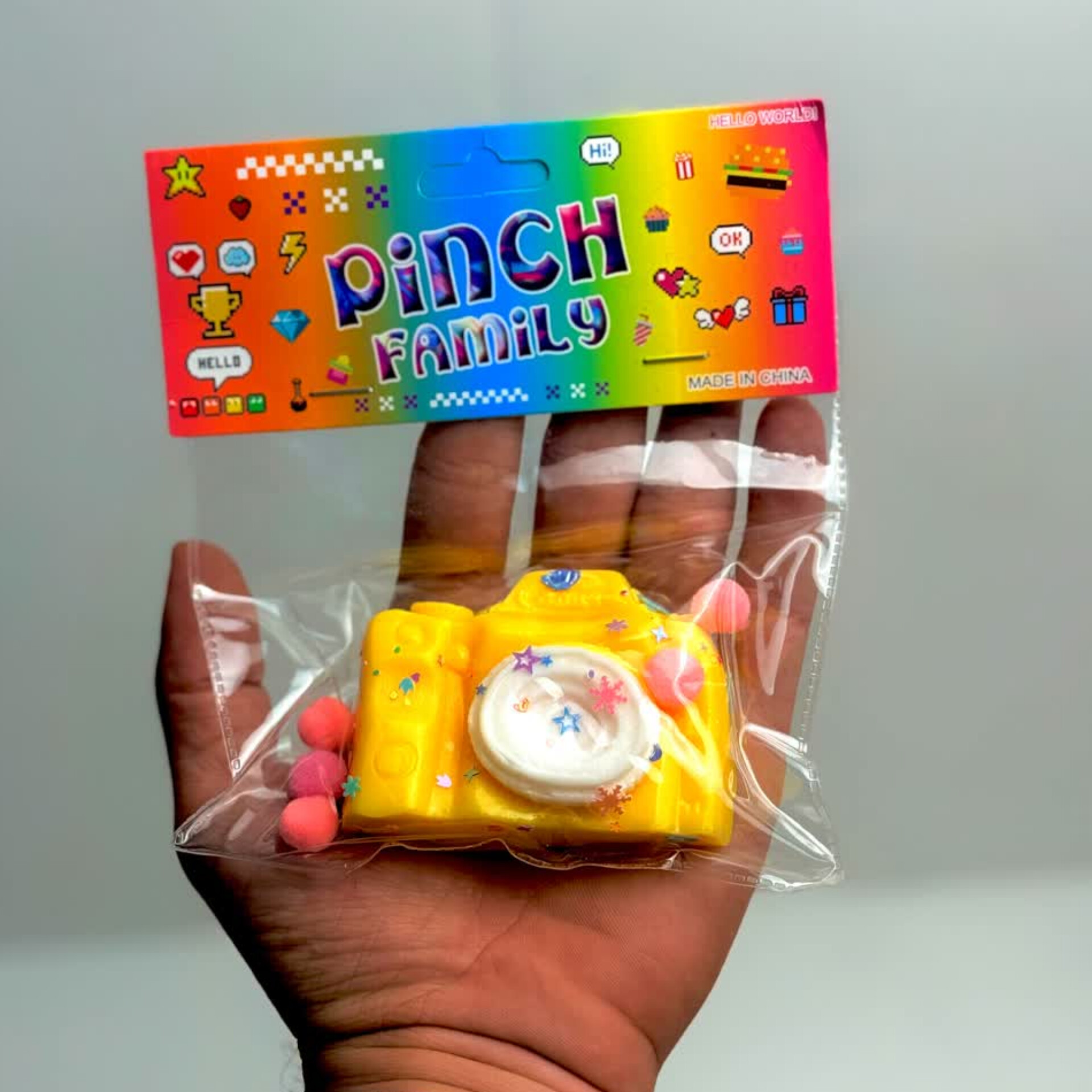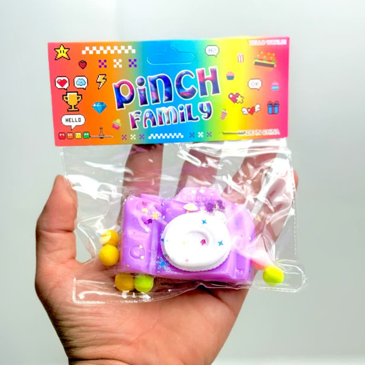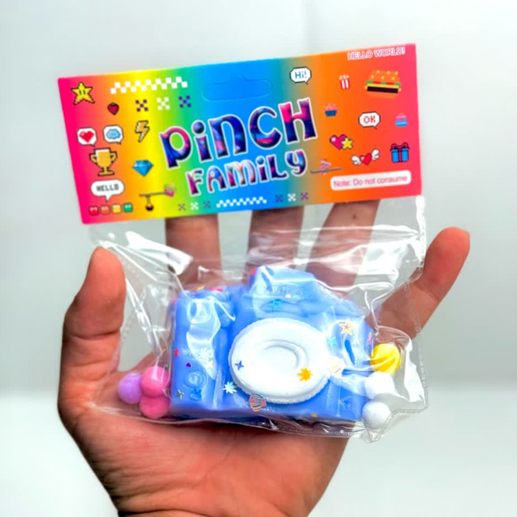 این اسکوییشی نرمالو با طرح بامزه دوربین، همراهی عالی برای ثبت لحظههای شاد و تجربهی آرامش است! بافت فوقالعاده نرم و لطیفش حس خوبی هنگام فشردن منتقل میکند و رنگهای شاد آبی، بنفش و زرد آن، به همراه جزئیات فانتزی، آن را به یک اسباببازی جذاب و دوستداشتنی تبدیل کرده.